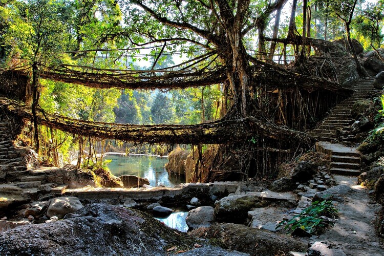 The Living Root Bridges of India ... Kuriositas - "India has a population of over a billion and our ideas about the country are often informed by that statistic. Yet there are places on the sub-continent which are still almost inaccessible. Meghalaya in the north east of the country is home to mountainous subtropical forests. In order to get around, local people have come up with an ingenious form of natural engineering – the living root bridge.It always seems to rain here – the rivers are often very dangerous to ford. This is one of the wettest places on the planet. The steady precipitation combined with the rugged terrain, steep hillsides and thick foliage of the forests would make many parts of the Meghalayan jungles unreachable. Yet the inventive and resourceful people who live here have found a way – but they had to be very patient, at least to begin with. ..."more photos: http://bit.ly/1472qf7